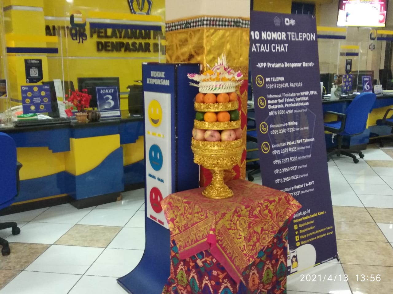Rangkaian Hari Raya Galungan yang jatuh pada tanggal 13-15 April 2021, merupakan libur fakultatif di wilayah provinsi Bali. Libur fakultatif Galungan tahun ini bertepatan juga dengan hari pertama puasa Bulan Ramadan 1442 H, hal ini tidak menyurutkan antusiasme wajib pajak KPP Pratama Denpasar Barat untuk melaporkan SPT Tahunan. Wajib pajak silih berganti datang ke kantor pajak di Denpasar (Selasa,13/4).