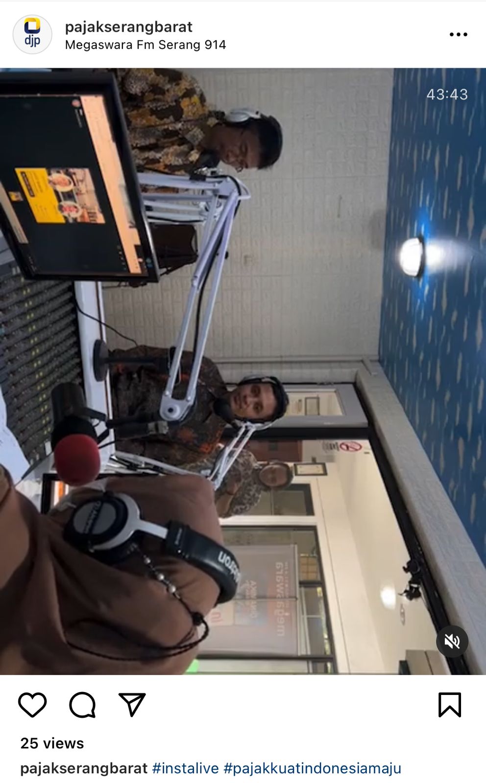 Penyuluh Kantor Pelayanan Pajak (KPP) Pratama Serang Barat kembali melakukan Instagram Live di Radio Megaswara 94.1 FM Kota Serang melalui akun instagram KPP Pratama Serang Barat yaitu @pajakserangbarat (Selasa, 26/4).