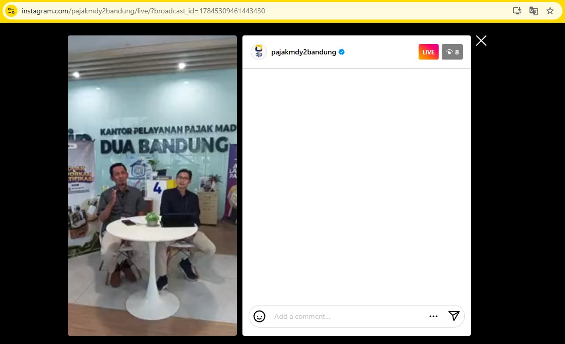 Setelah sesi perbincangan, Susanto dan Sugiarto membuka sesi tanya jawab pada kolom live chat instagram KPP Madya Dua Bandung.