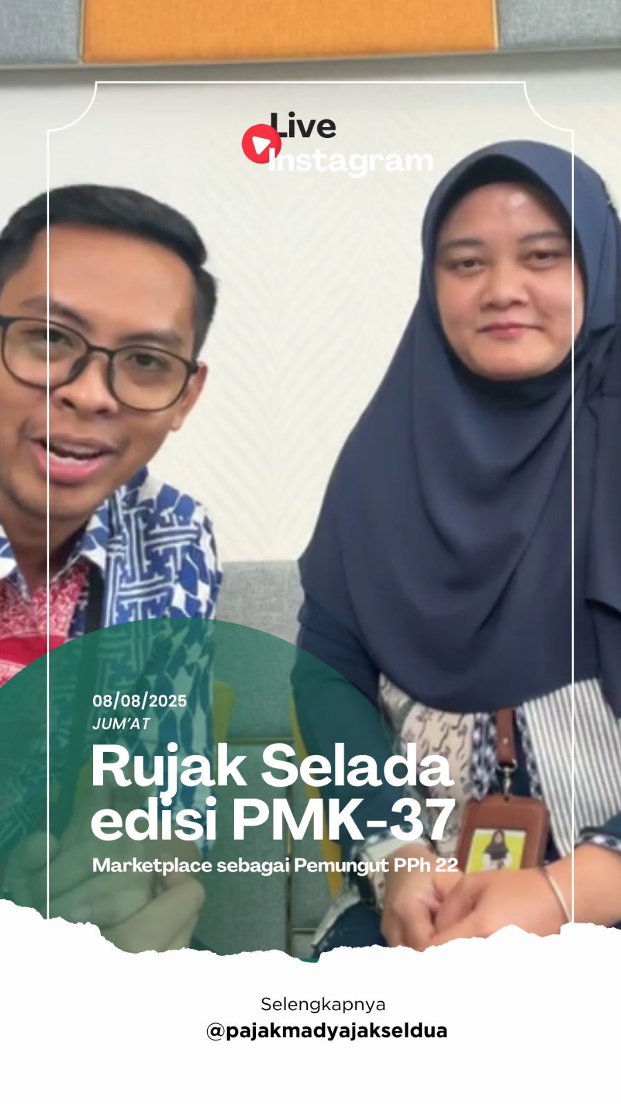 “PMK 37 Tahun 2025 bukanlah pajak baru, melainkan penyederhanaan mekanisme pemungutan pajak agar lebih praktis dan transparan,” ujar Dodi. Setelah materi disampaikan, live IG dilanjutkan dengan sesi tanya jawab dengan wajib pajak. Wajib pajak yang tidak menyaksikan siaran langsung tersebut dapat menonton rekaman live IG tersebut melalui unggahan pada akun Instagram @pajakmadyajakseldua.