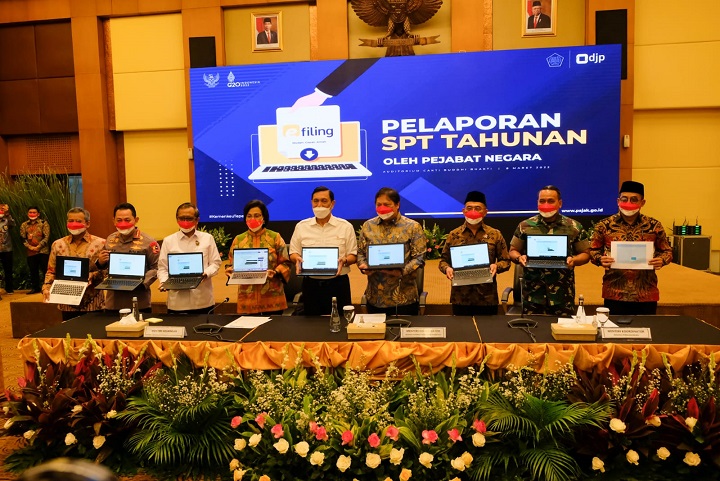 Dalam acara itu, Luhut melaporkan Surat Pemberitahuan (SPT) Tahunan Wajib Pajak Orang Pribadi Tahun Pajak 2021 bersama Menteri Keuangan Sri Mulyani Indrawati. Para pejabat negara tersebut melaporkan pajak secara daring melalui e-Filing.