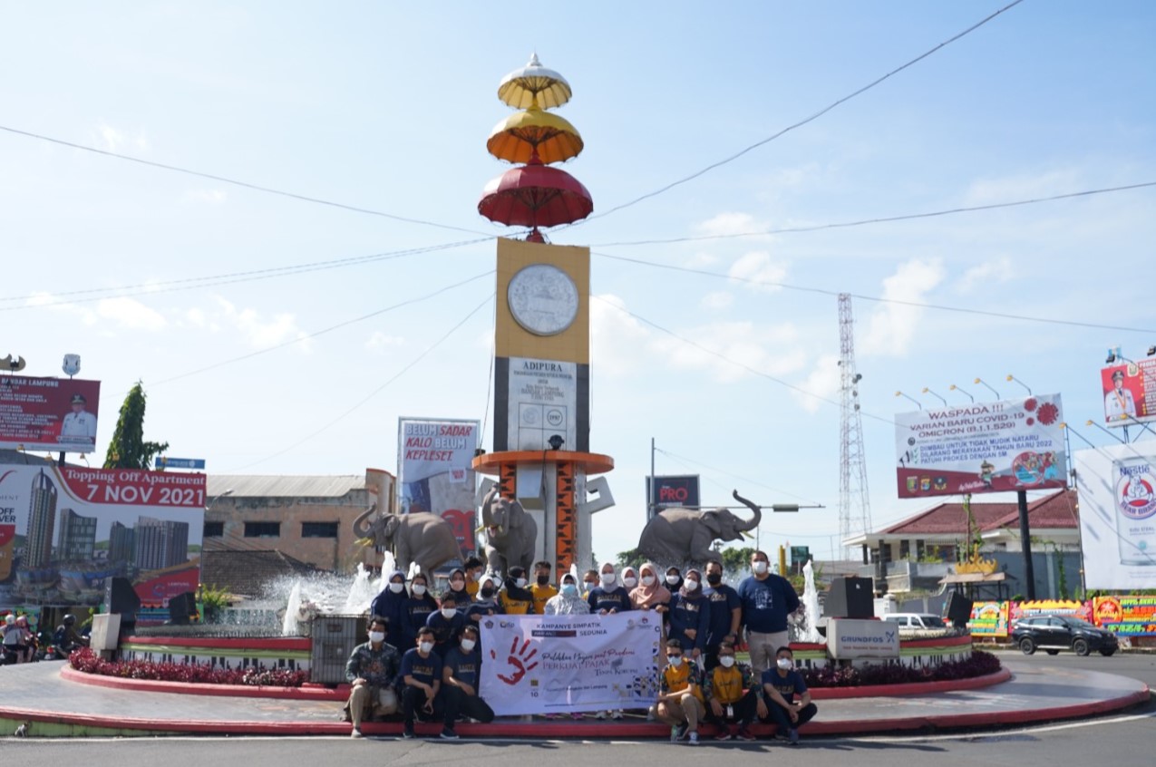 Kantor Pelayanan Pajak (KPP) Madya Bandar Lampung bersama Kantor Wilayah (Kanwil) DJP Bengkulu dan Lampung menggelar kampanye simpatik dalam rangka memperingati Hari Antikorupsi Sedunia (Hakordia) di Tugu Adipura Kota Bandar Lampung (Jumat, 10/12).
