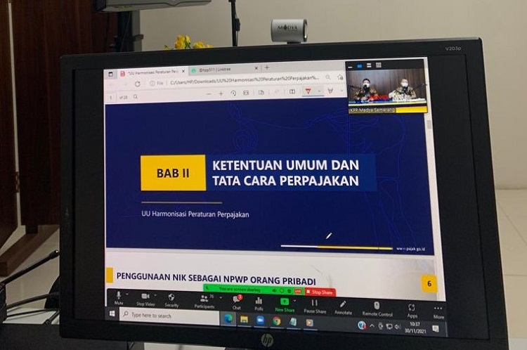 Kantor Pelayanan Pajak Madya Semarang (KPP Madya Semarang) menyelenggarakan edukasi Undang-Undang Harmonisasi Peraturan Perpajakan (UU HPP) secara daring melalui media Zoom dan Youtube di Semarang (Rabu, 1/12). Seluruh Wajib Pajak KPP Madya Semarang, kurang lebih 1.400 wajib pajak terdaftar, diundang dalam kegiatan edukasi yang dibagi menjadi beberapa sesi.