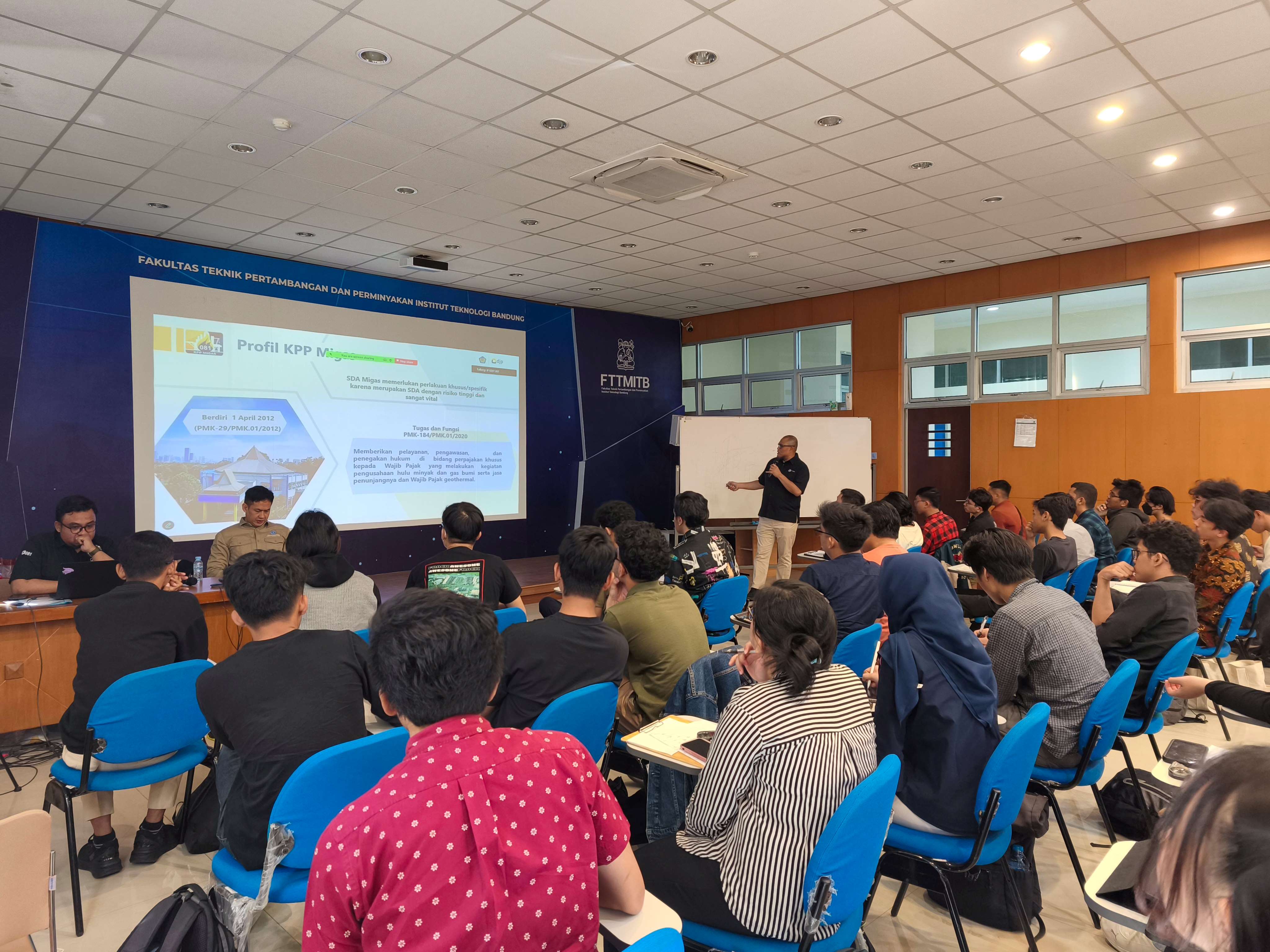 Kepala Kantor Pelayanan Pajak Minyak dan Gas Bumi (KPP Migas), Luky Priyanto, menjadi narasumber pada kuliah umum aspek perpajakan sektor pertambangan minyak dan gas bumi (migas) untuk mata kuliah Manajemen dan Keekonomian Proyek bagi Mahasiswa Program Studi Teknik Perminyakan, Fakultas Teknik Pertambangan dan Perminyakan, Institut Teknologi Bandung (FTTM ITB) (Selasa, 10/6).