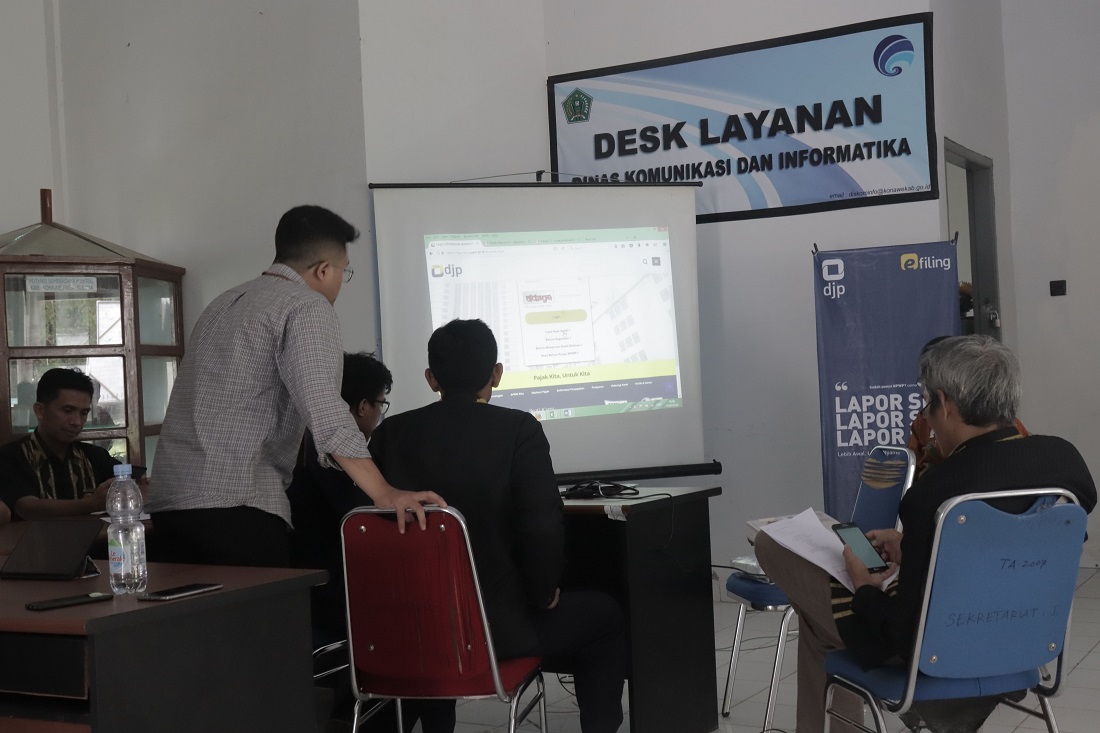 Kantor Pelayanan, Penyuluhan, dan Konsultasi Perpajakan (KP2KP) Unaaha Melaksanakan Kegiatan Sosialisasi Pelaporan SPT melalui e-Filing kepada Pegawai Dinas Komunikasi dan Informatika Kabupaten Konawe (Kamis, 13/2). Kegiatan ini diadakan di Balai Pertemuan Dinas Komunikasi dan Informatika Kabupaten Konawe.