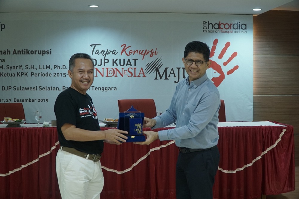 Pada acara yang diikuti oleh seluruh pegawai Kanwil DJP Sulselbartra ini, Syarif menyampaikan bahwa segala pemicu tindakan korupsi harus dilawan. Pencegahan tindak korupsi pun dapat dimulai dari diri sendiri, di antaranya dengan selalu menjaga integritas, utamanya dari konflik kepentingan. Usai sesi ceramah antikorupsi, acara dilanjutkan dengan penandatanganan komitmen antikorupsi oleh Kepala Kanwil DJP Sulselbartra beserta jajaran pejabat eselon III DJP di lingkungan Kanwil DJP Sulselbartra.