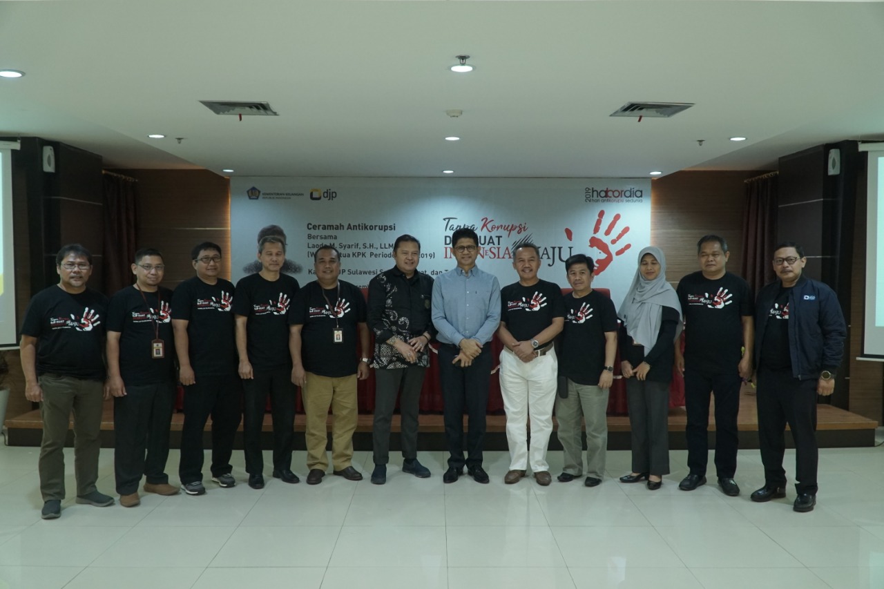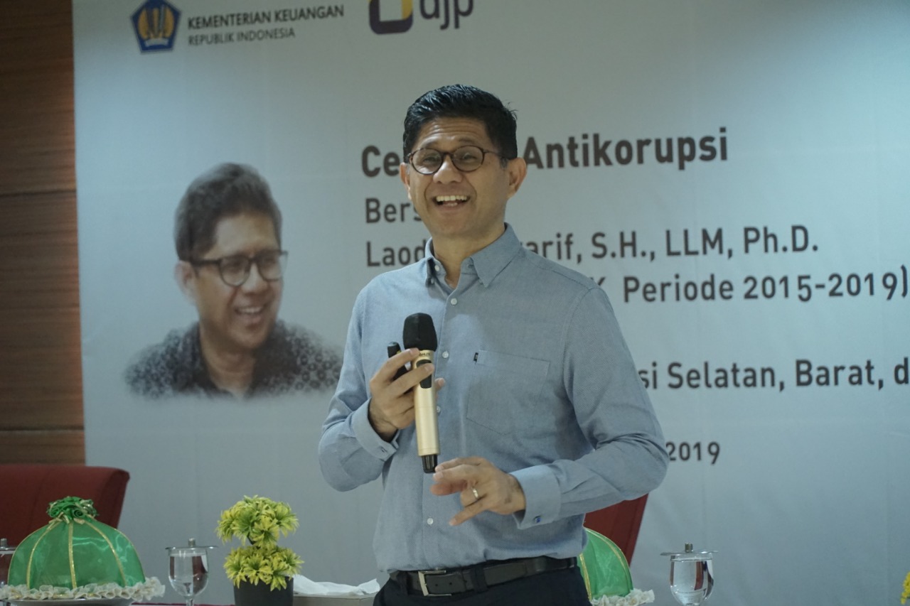 Menyemarakkan peringatan Hari Antikorupsi Sedunia (Hakordia) tahun 2019, Kanwil DJP Sulawesi Selatan, Barat, dan Tenggara (Sulselbartra) menerima kunjungan dari mantan Wakil Ketua KPK Laode M. Syarif (Jumat, 27/12). Dalam kesempatan ini, Laode M. Syarif diundang untuk mengisi sesi ceramah antikorupsi pada rangkaian acara yang dilangsungkan di ruang aula Kanwil DJP Sulselbartra.