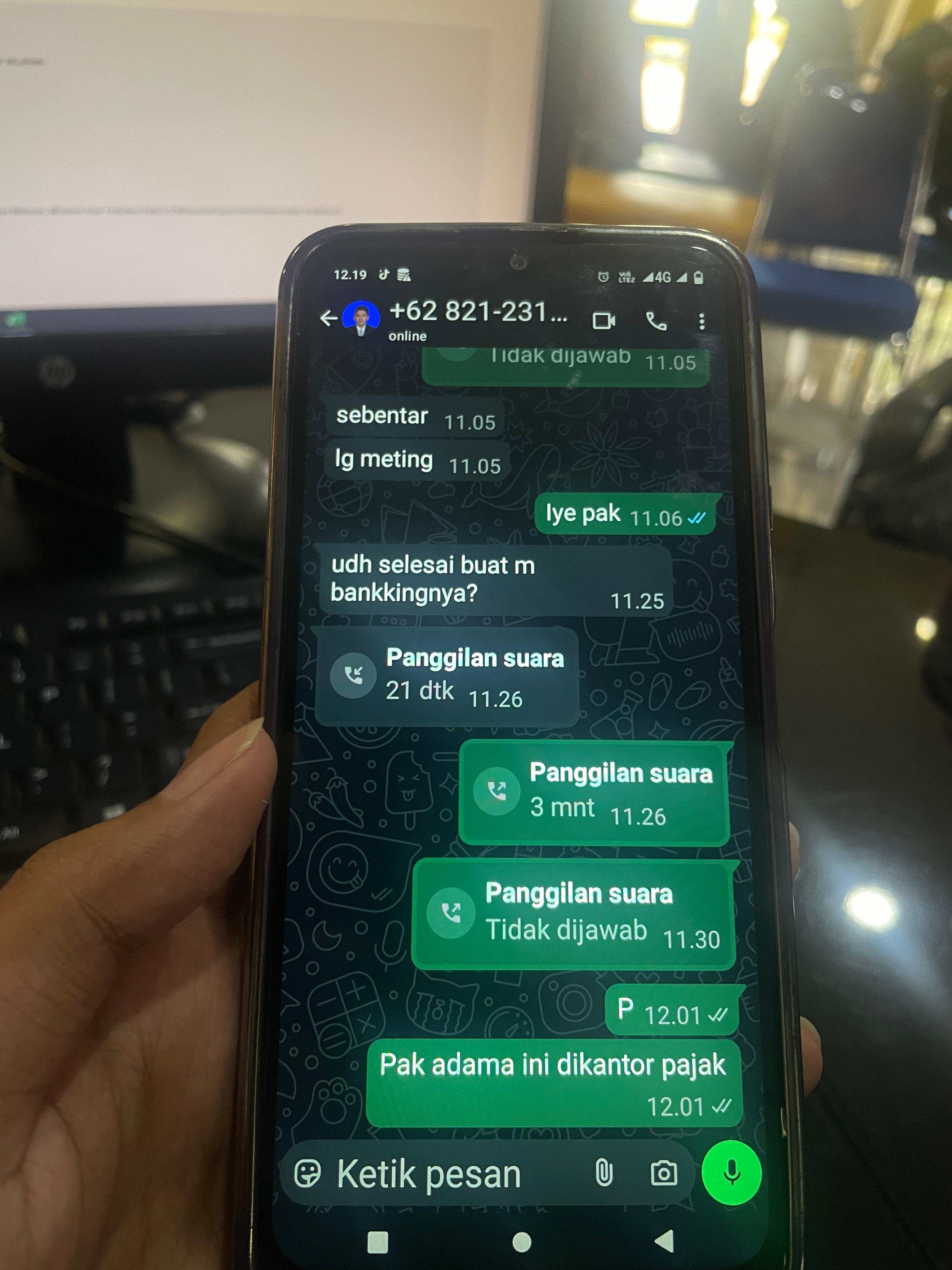 Kantor Pelayanan Penyuluhan dan Konsultasi Perpajakan (KP2KP) Takalar memberikan edukasi langsung kepada wajib pajak yang dicurigai menjadi target penipuan melalui WhatsApp. Edukasi ini dilakukan oleh Petugas KP2KP Takalar, Dion di Ruang Pelayanan KP2KP Takalar, Sulawesi Selatan (Senin, 7/5).
