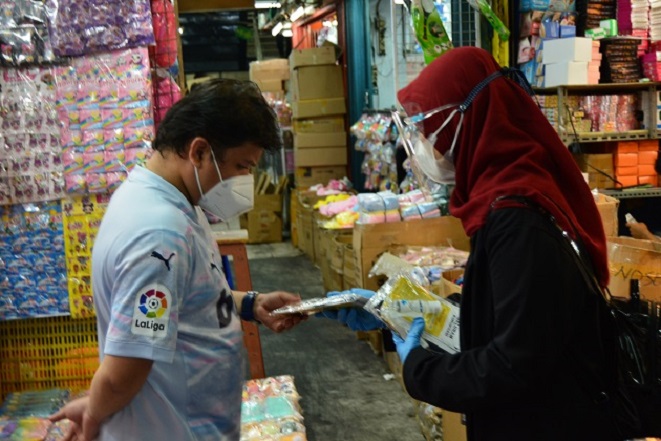 Selain itu, petugas juga membagikan selebaran insentif pajak yang diberikan kepada wajib pajak Usaha Mikro, Kecil, dan Menengah (UMKM) di lokasi aksi.