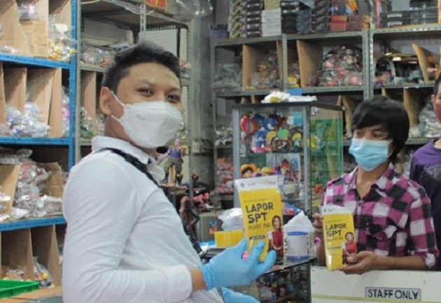 Aksi simpatik ini dimulai pada pukul 09.00 WIB dengan membagikan paket berupa penyanitasi tangan (hand sanitizer), masker, pamflet lapor SPT, dan pamflet daftar saluran komunikasi di Kanwil DJP Jakarta Barat.