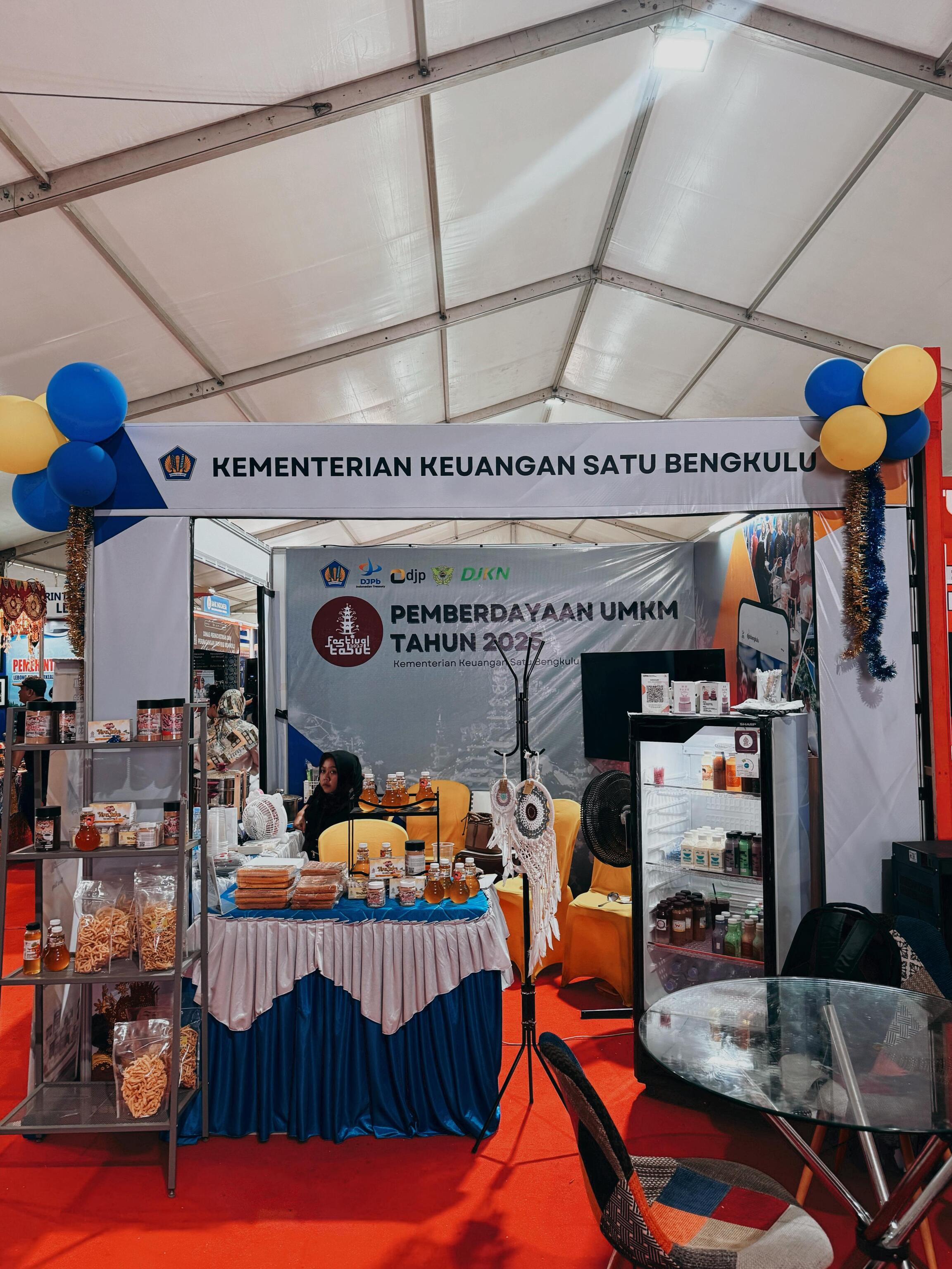 Kantor Pelayanan Pajak (KPP) Pratama Bengkulu Satu membuka Pojok Pajak di Booth Pemberdayaan UMKM Kementerian Keuangan Satu Bengkulu pada Festival Tabut di Sport Center, Jalan Pariwisata, Kecamatan Ratu Samban, Kota Bengkulu (Senin, 30/6).
