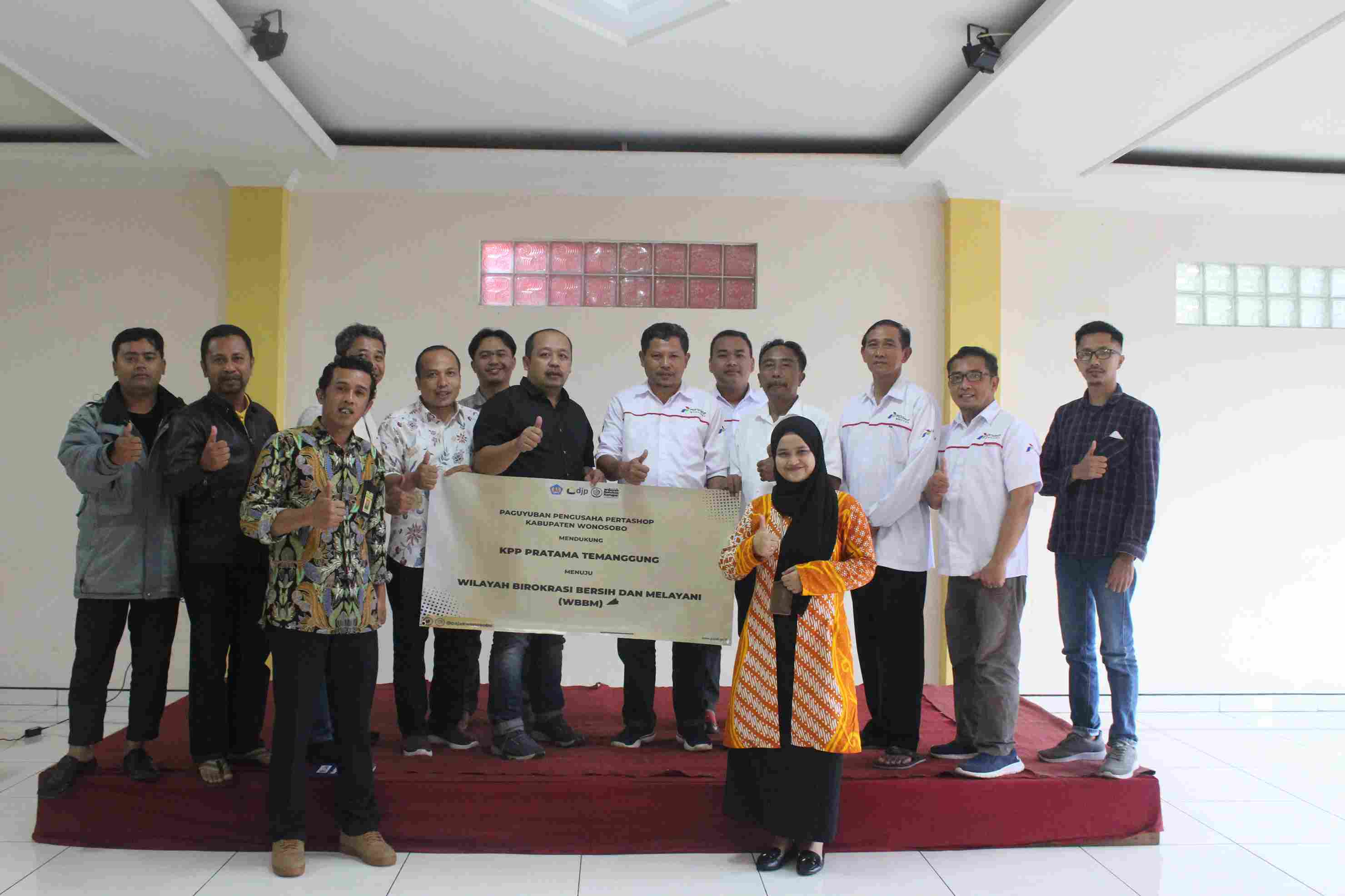 Melalui bimtek ini, dimaksudkan agar kebingungan wajib pajak pengusaha pertashop atas kewajiban perpajakannya bisa terjawab tuntas. Dalam pertemuan tersebut, petugas penyuluh KP2KP Wonosobo, Edi Cundoko dan Widyaningtias mengajak foto bersama wajib pajak dalam rangka mendukung KPP Pratama Temanggung menuju Wilayah Birokrasi Bersih dan Melayani (WBBM).