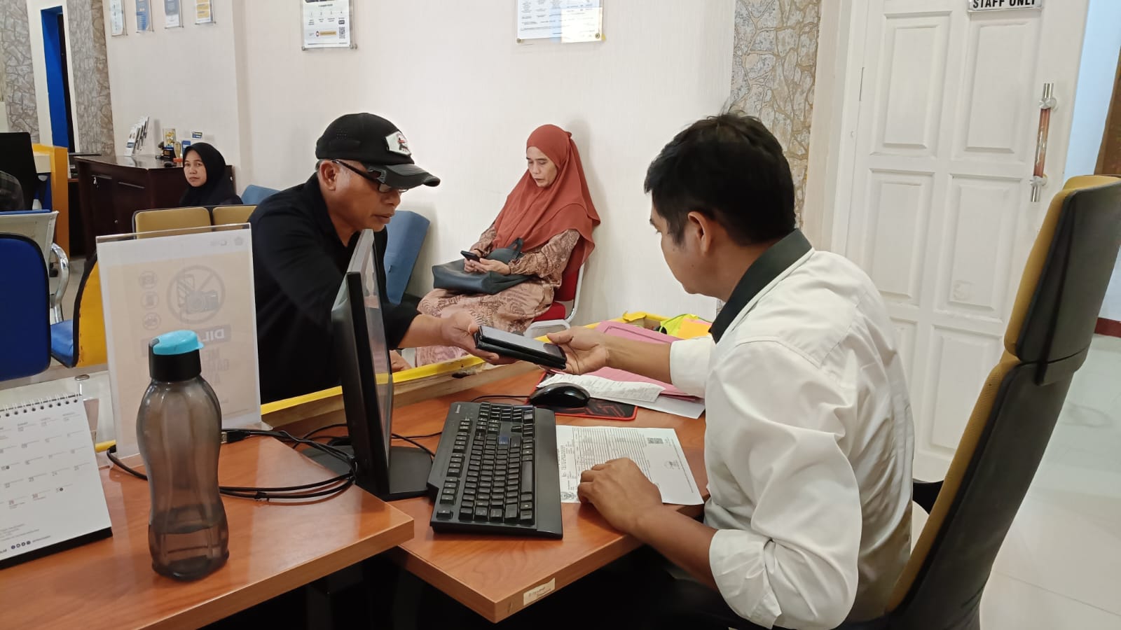 “Saya akhir-akhir ini sering dichat dan ditelpon Pak. Katanya dari kantor pajak. Saya pernah dichat untuk menginstal aplikasi M-Pajak tapi saya takut jadi saya ke sini untuk konfirmasi,” ucap wajib pajak kepada petugas KP2KP Sinjai.