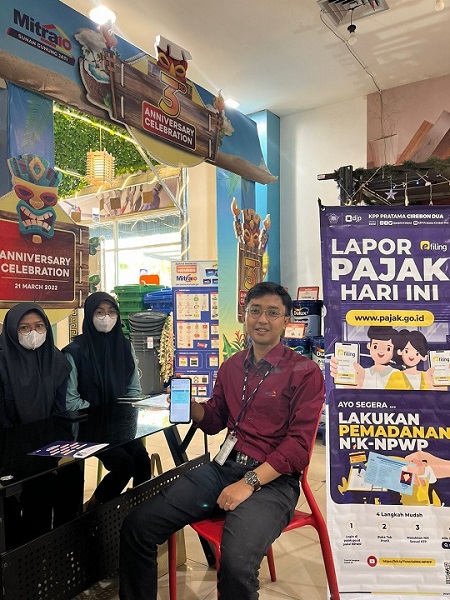 Kantor Pelayanan Pajak (KPP) Pratama Cirebon Dua mengadakan Pojok Pajak di Pusat Perbelanjaan Mitra 10, Kabupaten Cirebon (Selasa, 14/3). Pojok Pajak ini diadakan guna memudahkan wajib pajak, khususnya Kabupaten Cirebon untuk mendapatkan asistensi pelaporan Surat Pemberitahuan (SPT) Tahunannya melalui e-Filing. Lokasi Pojok Pajak ini sangat strategis karena bertempat di Pusat Perbelanjaan yang ramai.