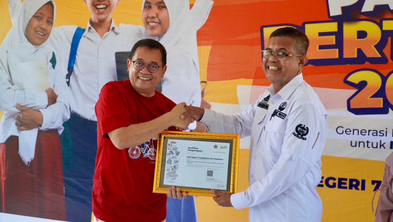 Sebagai bentuk apresiasi atas dukungan sekolah, Kanwil DJP Sulselbartra melalui Kepala Kanwil DJP Sulselbartra, YFR Hermiyana, menyerahkan Edutax Award kepada Kepala SMKN 7 Pangkep.