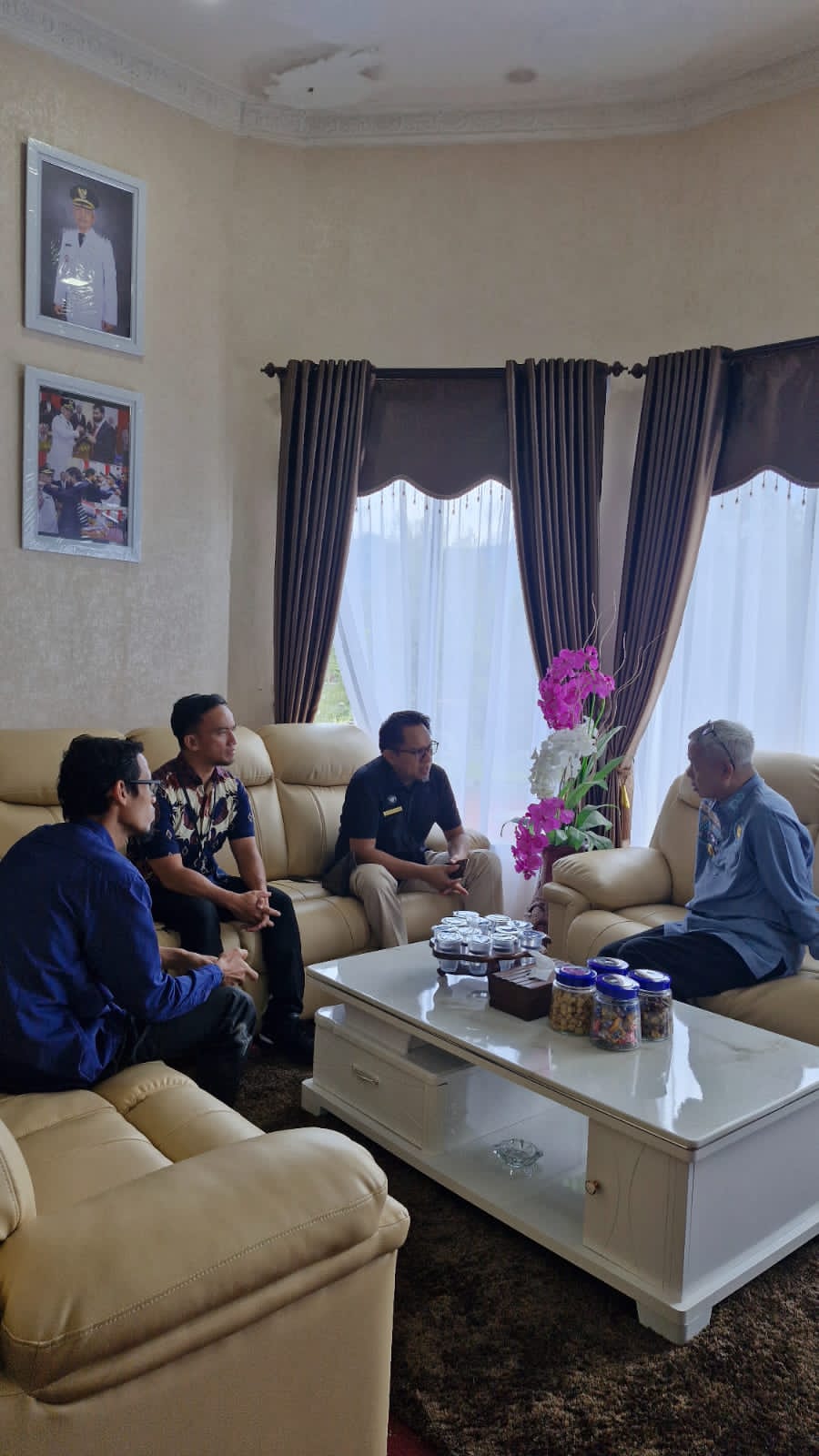 Kepala Kantor Pelayanan Pajak (KPP) Pratama Bireuen menemui Wakil Bupati Bener Meriah untuk mendiskusikan mengenai berbagai isu terkait industri kopi di Bener Meriah yang bertempat di ruang kerja Wakil Bupati Bener Meriah, Kabupaten Bener Meriah (Kamis, 8/5).