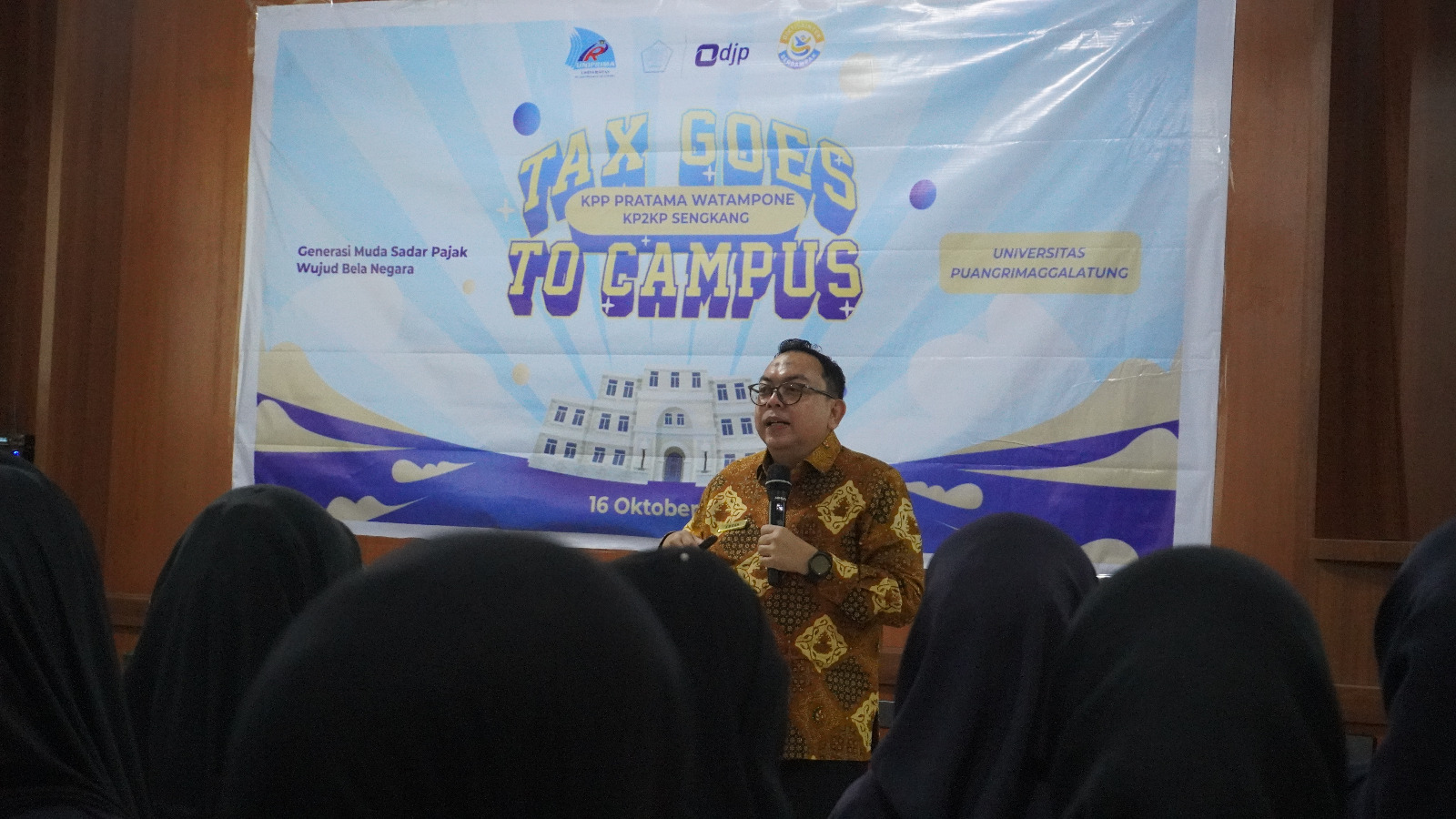 Kantor Pelayanan Pajak (KPP) Pratama Watampone bersama Kantor Pelayanan, Penyuluhan, dan Konsultasi Perpajakan (KP2KP) Sengkang menjalin kerja sama strategis dengan Universitas Puangrimaggalatung (Uniprima) melalui kegiatan penandatanganan Memorandum of Understanding (MoU) pembentukan tax center, penyerahan Piagam Wajib Pajak, pelaksanaan program Tax Goes to Campus (TGTC), serta kuliah umum perpajakan.
