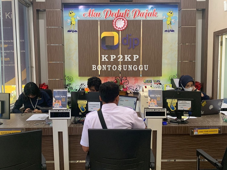 Kantor Pelayanan, Penyuluhan, dan Konsultasi Perpajakan (KP2KP) Bontosunggu menerima kunjungan salah satu dinas di loket Tempat Pelayanan Terpadu (TPT) KP2KP Bontosunggu, Kecamatan Binamu, Kabupaten Jeneponto (Rabu, 13/9).
