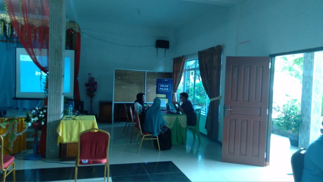 Kantor Pelayanan, Penyuluhan, dan Konsultasi Perpajakan (KP2KP) Dabo Singkep membuka layanan Pojok Pajak untuk asistensi pengisian Surat Pemberitahuan (SPT) Tahunan Pajak Penghasilan (PPh) Orang Pribadi dan melayani konsultasi perpajakan untuk para pengusaha UMKM (Usaha Mikro Kecil dan Menengah) Daik Lingga di aula Hotel Lingga Pesona, Lingga, Kepulauan Riau (Kamis, 3/3).