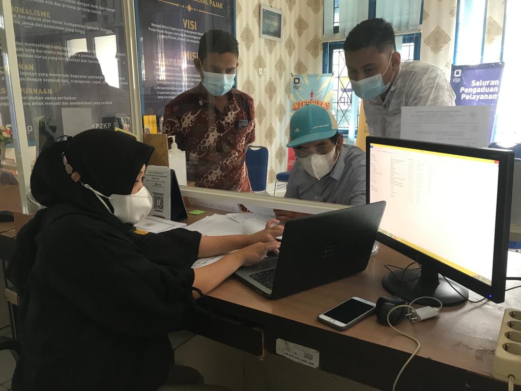 Setelah melakukan asistensi, Annisa memberikan nomor layanan secara daring KP2KP Banawa kepada wajib pajak.