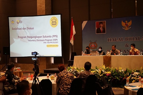 Kantor Wilayah Direktorat Jenderal Pajak (Kanwil DJP) Jakarta Utara berikan kelas pajak Program Pengungkapan Sukarela (PPS) secara luring di Kemayoran, Jakarta (Kamis, 12/5). Sebanyak 90 notaris mengikuti kelas pajak dalam rangkaian acara Rapat Anggota Ikatan Notaris Indonesia. Sesi kelas pajak PPS dimulai pukul 13.30 sampai pukul 14.30 WIB. Kepala Kanwil DJP Jakarta Utara memberikan arahan dan sambutan kepada seluruh notaris yang hadir.