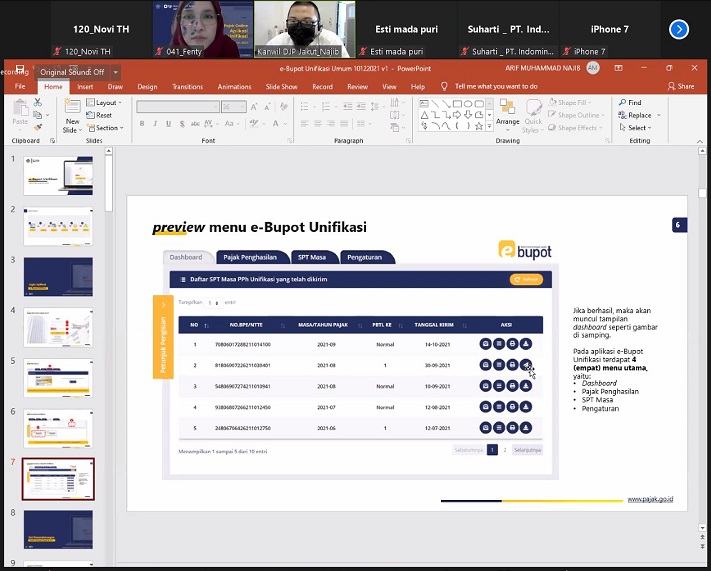 Kantor Pelayanan Pajak (KPP) Pratama Jakarta Penjaringan berkolaborasi dengan Kanwil DJP Jakarta Utara selenggarakan kelas pajak SPT Masa PPh Unifikasi yang disampaikan melalui aplikasi e-Bupot Unifikasi, secara daring di Jakarta (Senin, 14/3).