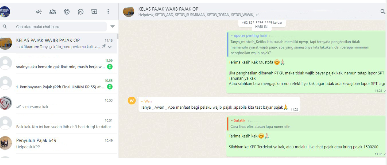 "Apabila Wajib Pajak patuh, sumber pendapatan utama negara yaitu pajak akan terpenuhi dan tentunya akan berimbas terdistribusinya belanja negara dengan baik," kata Ajeng menjawab pertanyaan Awan Susanto, wajib pajak asal Kecamatan Bareng Jombang.