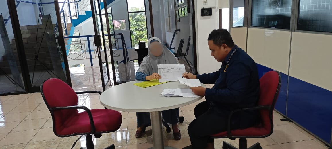 Account Representative (AR) Kantor Pelayanan Pajak (KPP) Pratama Kediri Moh. Iskhak menyambut kedatangan wajib pajak untuk melakukan klarifikasi atas Surat Permintaan Penjelasan Data dan/atau Keterangan (SP2DK) atau disebut Surat Imbauan di Ruang Konsultasi KPP Pratama Kediri, Jalan Brawijaya Nomor 6, Kecamatan Kota, Kota Kediri, Jawa Timur (Rabu, 28/8).