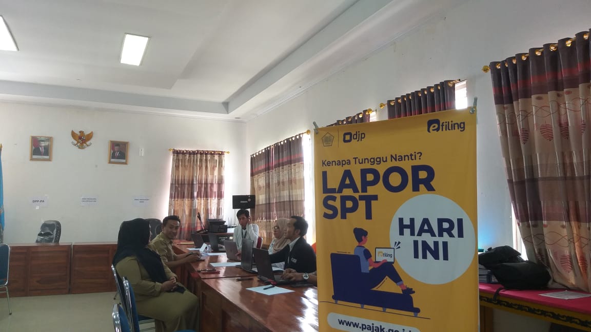 Kantor Pelayanan Pajak (KPP) Pratama Kolaka menggelar asistensi pelaporan Surat Pemberitahuan (SPT) Tahunan dengan membuka layanan pojok pajak di Kantor Badan Pengelolaan Keuangan dan Aset Daerah (BPKAD) Kabupaten Kolaka Timur (Rabu, 29/3).
