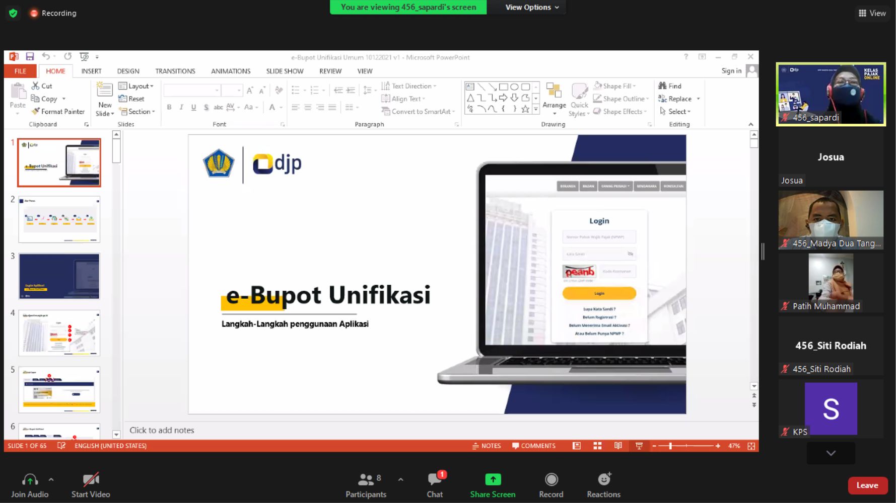 Kantor Pelayanan Pajak (KPP) Madya Dua Tangerang menyelenggarakan sosialisasi e-Bupot Unifikasi kepada seluruh wajib pajak terdaftar yang diadakan di ruang penyuluhan KPP Madya Dua Tangerang, Kabupaten Tangerang (Rabu, 6/4). Kegiatan yang diselenggarakan oleh Tim Fungsional Penyuluh KPP Madya Dua Tangerang diadakan secara virtual melalui aplikasi Zoom Meeting dengan diikuti oleh 15 peserta.