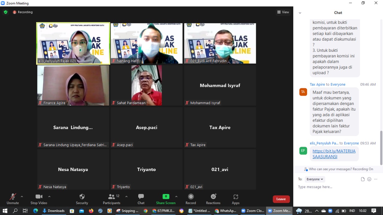 KPP Pratama Jakarta Menteng Satu mengadakan kelas pajak online terkait jasa asuransi (Jumat, 22/4).