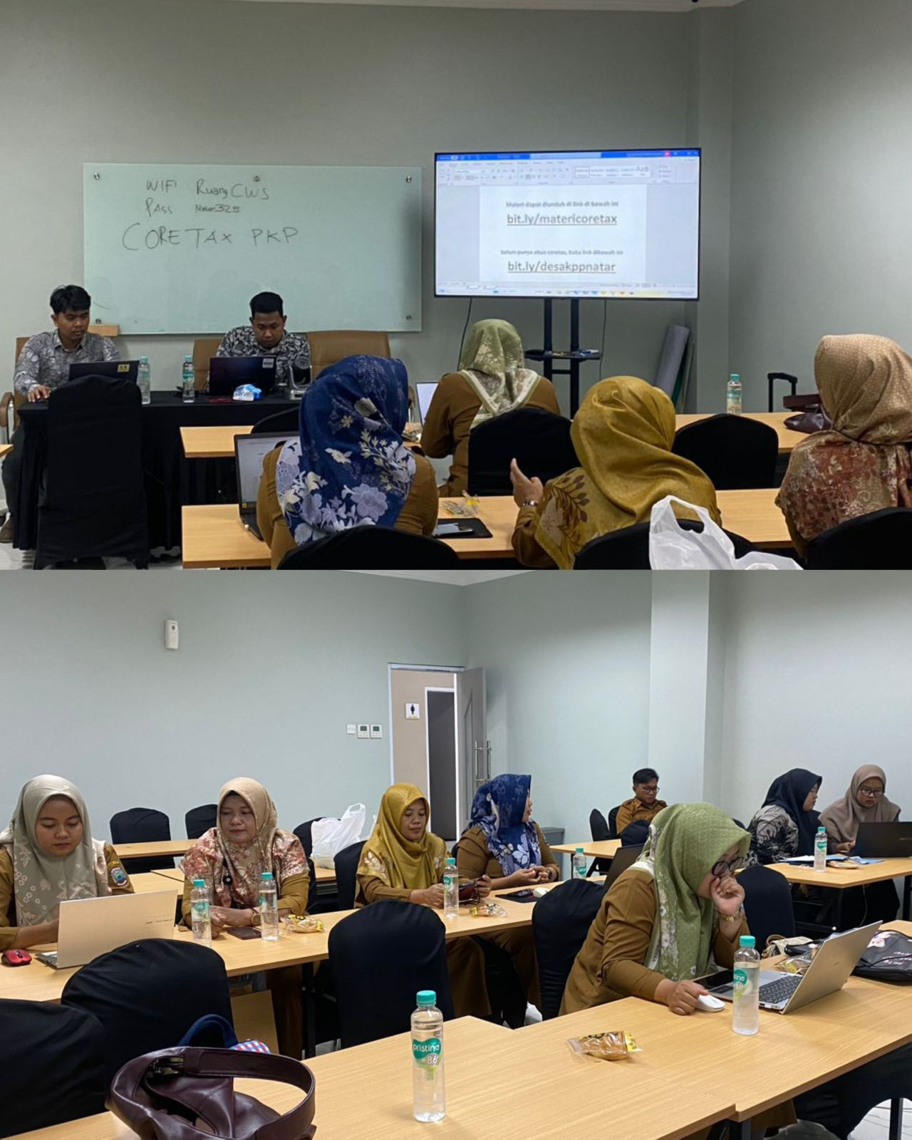 Kantor Pelayanan Pajak (KPP) Pratama Natar menyelenggarakan kegiatan asistensi dan edukasi penggunaan Sistem Coretax Direktorat Jenderal Pajak (DJP) kepada perwakilan dari 12 desa Kecamatan Jati Agung, Kabupaten Lampung Selatan, khususnya para bendahara desa atau penanggung jawab pelaporan perpajakan di Ruang Kelas Pajak KPP Pratama Natar, Jl. Lintas Sumatera KM 29, Kelurahan Haduyang, Kecamatan Natar, Kabupaten Lampung Selatan (Selasa, 22/7).