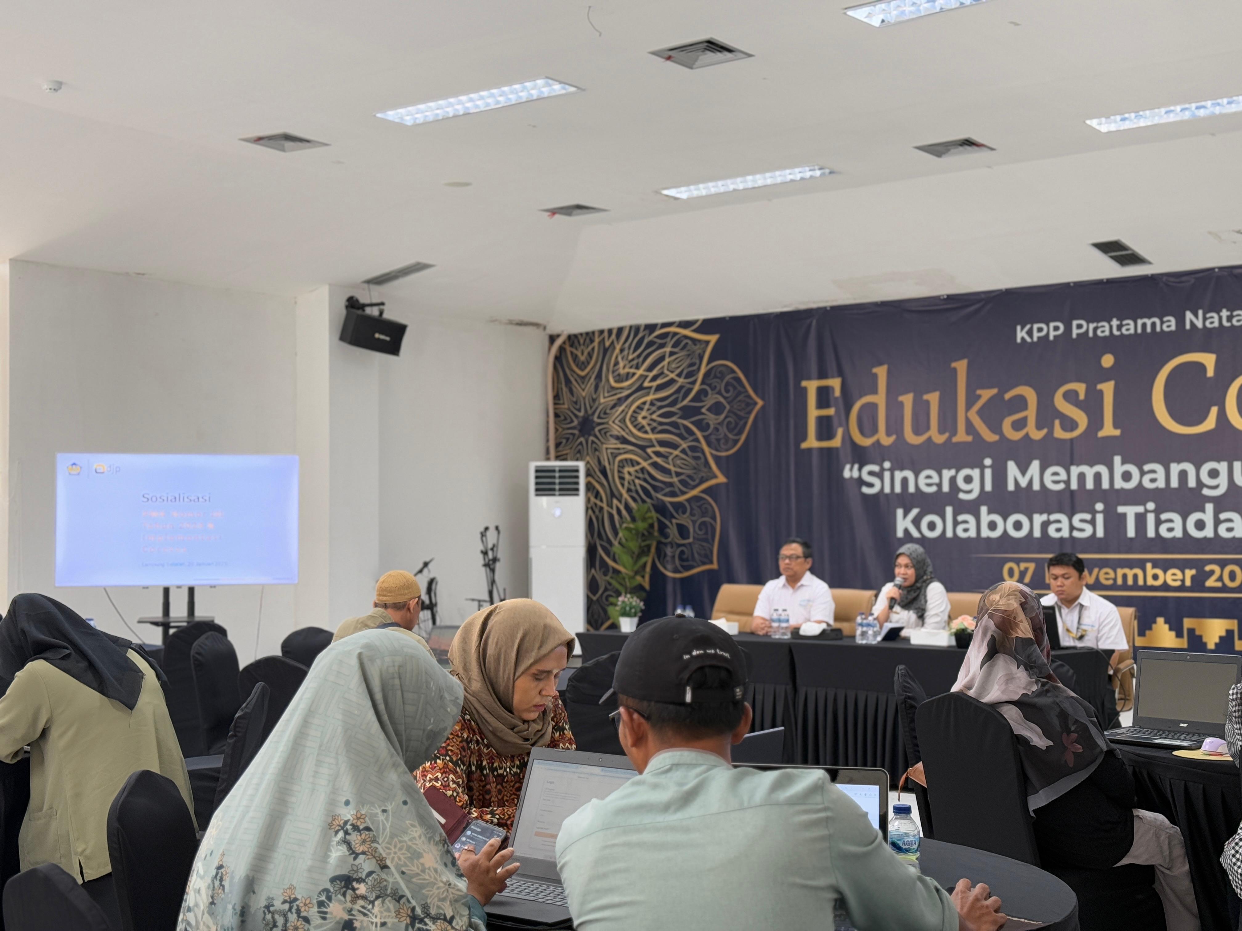 Kantor Pelayanan Pajak (KPP) Pratama Natar mengadakan kelas pajak penggunaan aplikasi Coretax DJP kepada Wajib Pajak Pengusaha Kena Pajak (PKP) di Aula KPP Pratama Natar, Kabupaten Lampung Selatan (Senin, 20/1). Kegiatan ini dihadiri oleh 52 Wajib Pajak PKP Kabupaten Lampung Selatan dan Kabupaten Pesawaran dari berbagai sektor usaha.