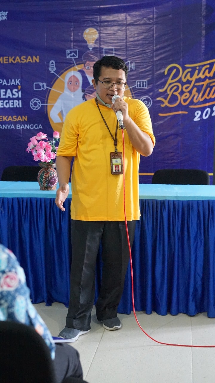 Selanjutnya, materi Pajak Bertutur kali ini disampaikan oleh salah satu penyuluh pajak, Nur Jaka Utama. "Salah satu manfaat pajak yaitu pembangunan infrastruktur. Di Madura sendiri manfaatnya bisa kita rasakan langsung yaitu adanya jembatan Suramadu. Jembatan ini membantu akses dari Madura menuju Surabaya menjadi lebih mudah," terang Jaka.