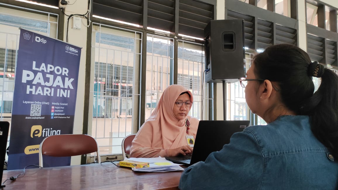 Layanan perpajakan ini bekerja sama dengan aparat pemerintah kecamatan Pati, memberikan sosialisasi dan asistensi serta mengingatkan wajib pajak yang belum lapor Surat Pemberitahuan (SPT) Tahunan untuk segera menyampaikan.