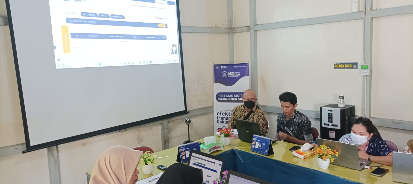 Kantor Pelayanan, Penyuluhan dan Konsultasi Perpajakan (KP2KP) Putussibau mengadakan sosialisasi perpajakan e-Bupot dan Surat Pemberitahuan (SPT) unifikasi instansi pemerintah dalam hal ini diwakili oleh Bendahara Kecamatan Boyan Tanjung yang bertempat di Ruang Kelas Pajak KP2KP Putussibau, Kabupaten Kapuas Hulu, Kalimantan Barat (Jumat, 14/04).