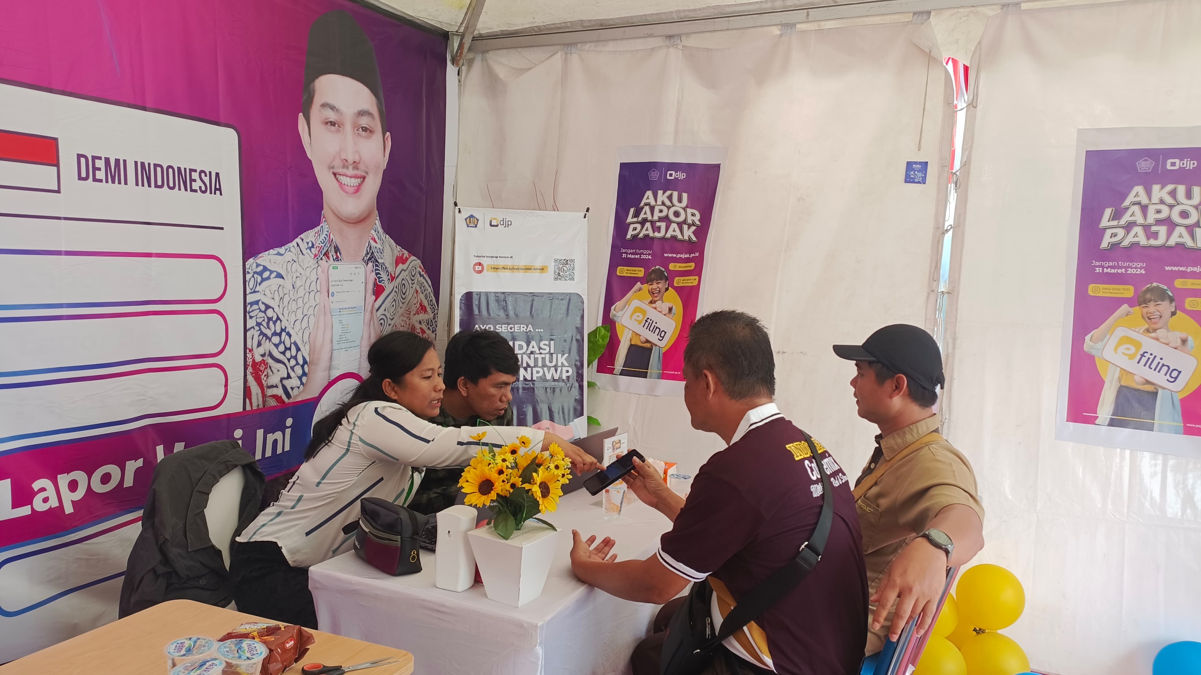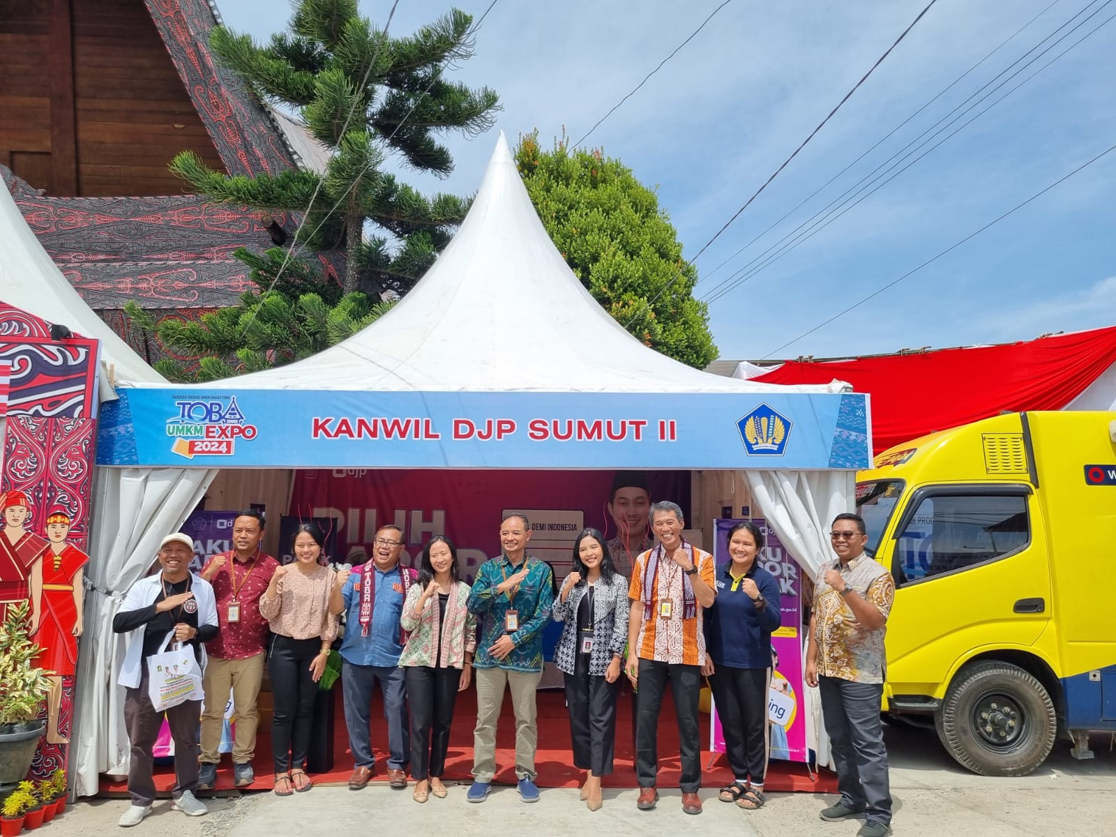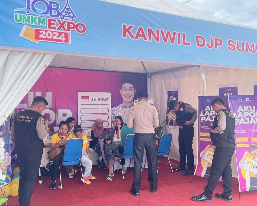 Kantor Wilayah Direktorat Jenderal Pajak (Kanwil DJP) Sumatera Utara II dan Kantor Pelayanan Pajak (KPP) Pratama Balige membuka layanan perpajakan dalam kegiatan Toba UKM Expo di Balai Adat Monumen DI Panjaitan, Kabupaten Balige, Sumatera Utara (Minggu, 3/3). Kegiatan yang diselenggarakan dalam rangka untuk menyukseskan kegiatan F1 Powerboat Tahun 2024 ini berlangsung selama tiga hari sejak Jumat, 1 Maret 2024.