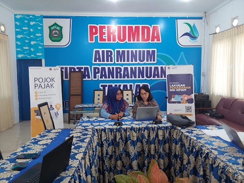 Kantor Pelayanan, Penyuluhan, dan Konsultasi Perpajakan (KP2KP) Takalar, bersinergi dengan Perusahaan Daerah Air Minum (PDAM) Tirta Panrannuangku Takalar untuk mengadakan pojok pajak yang bertempat di Kantor PDAM Tirta Panrannuangku, Jalan B. Aminullah No.4, Kabupaten Takalar (Selasa, 21/3). Pojok pajak ini diadakan guna memberikan kemudahan kepada para Aparatur Sipil Negara (ASN) di lingkungan Perumda Tirta Panrannuangku untuk mendapatkan asistensi pelaporan Surat Pemberitahuan (SPT) Tahunan Pajak Penghasilan (PPh) Orang Pribadi.