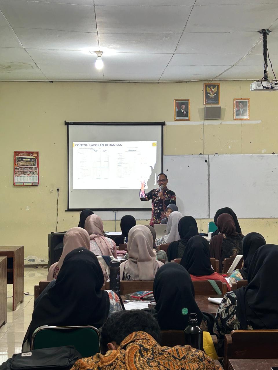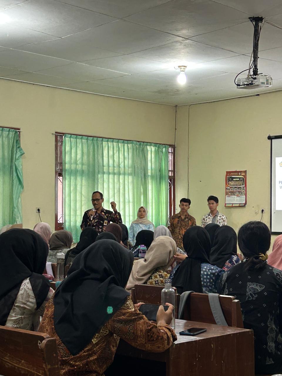 Kepala Seksi Pelayanan, Arif Hariyadi, dan Penyuluh Pajak, Isnaini Merdekawati Hidayah, memberikan materi tentang pajak dan penghitungan pajak penghasilan Wajib Pajak Badan khususnya pada perusahaan dagang.
