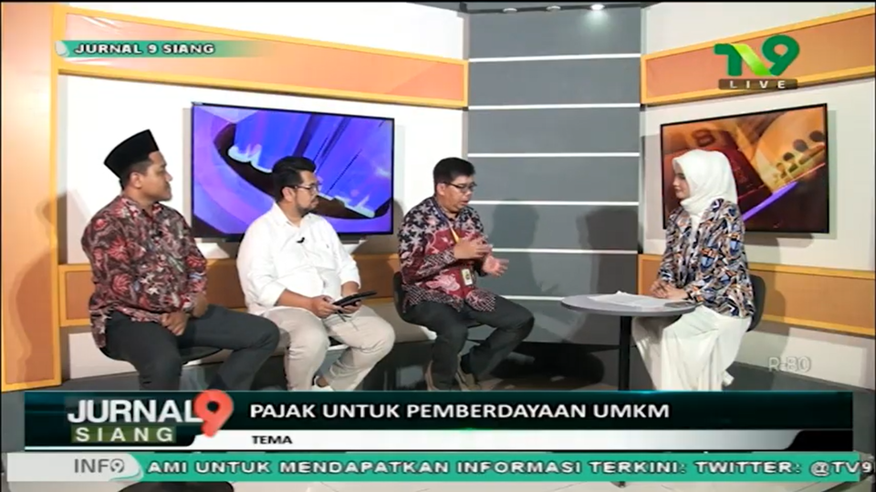 Kanwil DJP Jawa Timur I hadir dalam gelar wicara bertema “Pajak untuk Pemberdayaan UMKM” yang disiarkan langsung oleh TV 9 Nusantara di Kota Surabaya (Selasa, 19/8). Sugeng Pamilu Karyawan, hadir sebagai narasumber utama dalam dialog tersebut.