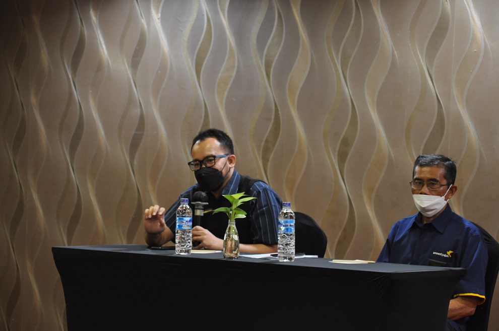 Rudi Hendriawan dan Sutardi, sebagai perwakilan tenaga penyuluh dari KPP Pratama Yogyakarta, memberikan penjelasan dan ilustrasi sederhana mengenai Pajak Pertambahan Nilai (PPN) Impor dan Ekspor.