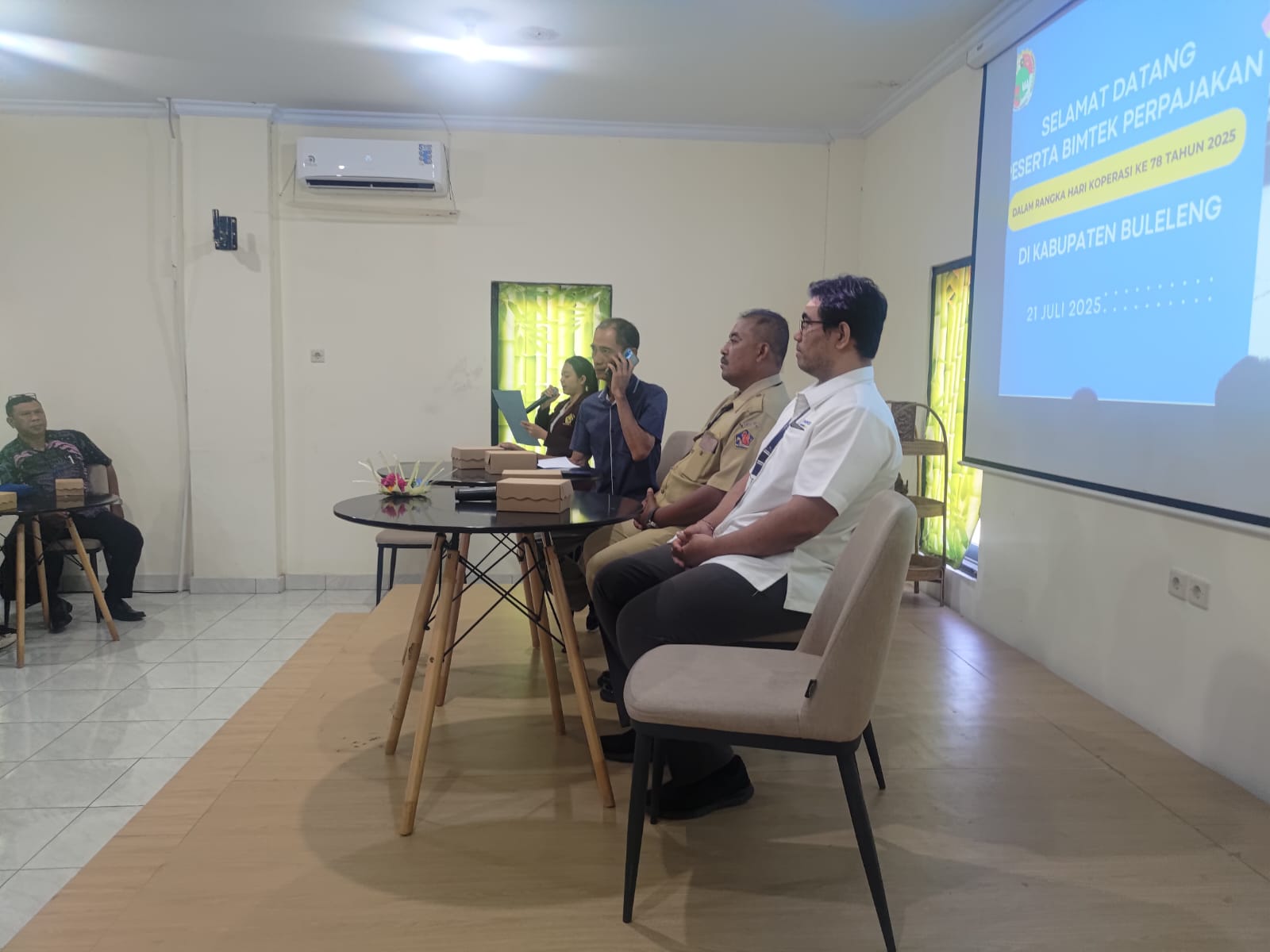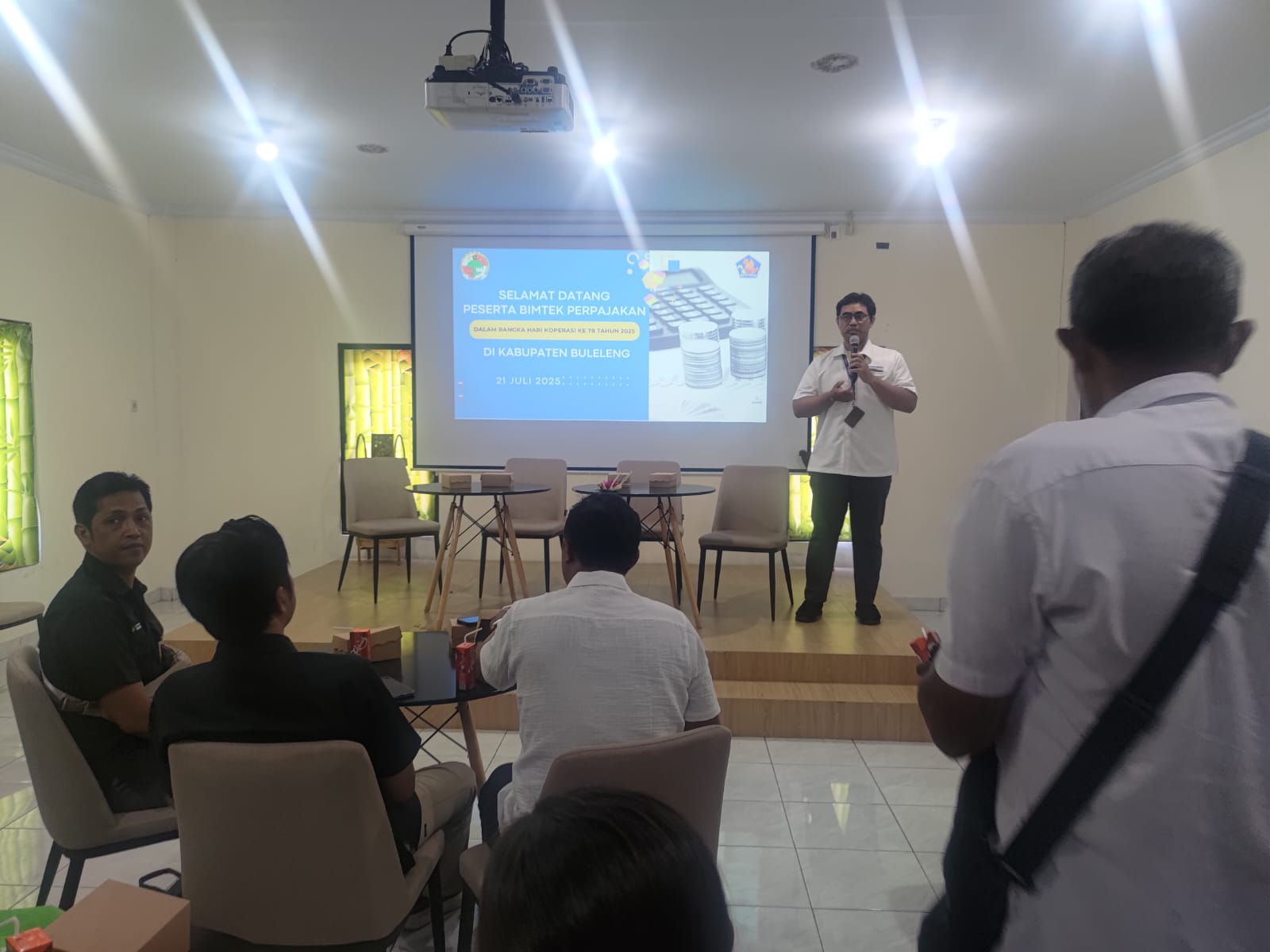 Kegiatan dibuka oleh I Gede Arya Eka Mahardi, Fungsional Pengawas Koperasi Dinas Perdagangan, Perindustrian, Koperasi dan UKM (Dagperinkop UKM) Kabupaten Buleleng mewakili Kepala Dinas Dagperinkop UKM. Dalam sambutannya Gede Arya menyampaikan pentingnya sinergi yang baik dengan KPP Singaraja untuk membantu tertib administrasi khususnya bagi Koperasi.