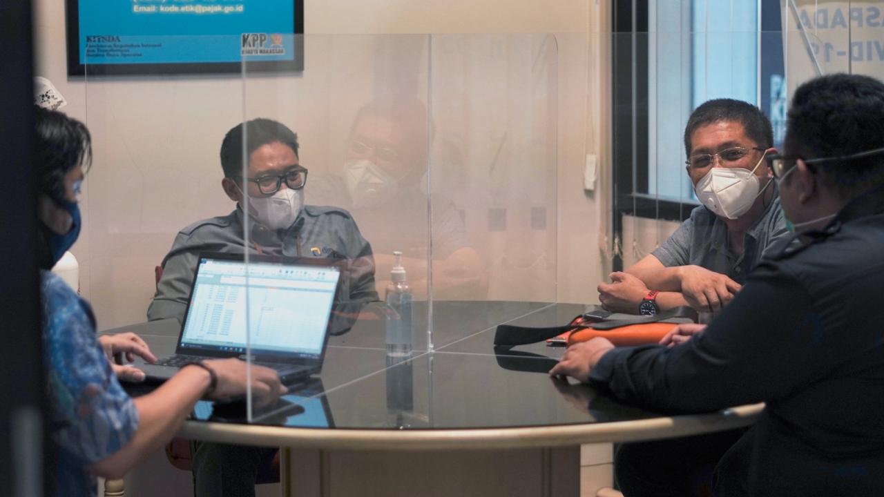 Kantor Pelayanan Pajak (KPP) Madya Makassar mengoptimalkan layanan konsultasi perpajakan pada wajib pajak baik secara daring maupun tatap muka dengan tetap mengikuti anjuran protokol kesehatan di Makassar (Kamis, 25/2). Untuk konsultasi secara tatap muka dalam rangka pemenuhan kewajiban perpajakan, disediakan fasilitas konsultasi yang aman dan nyaman karena telah sesuai dengan standardisasi sarana dan prasana era kenormalan baru.