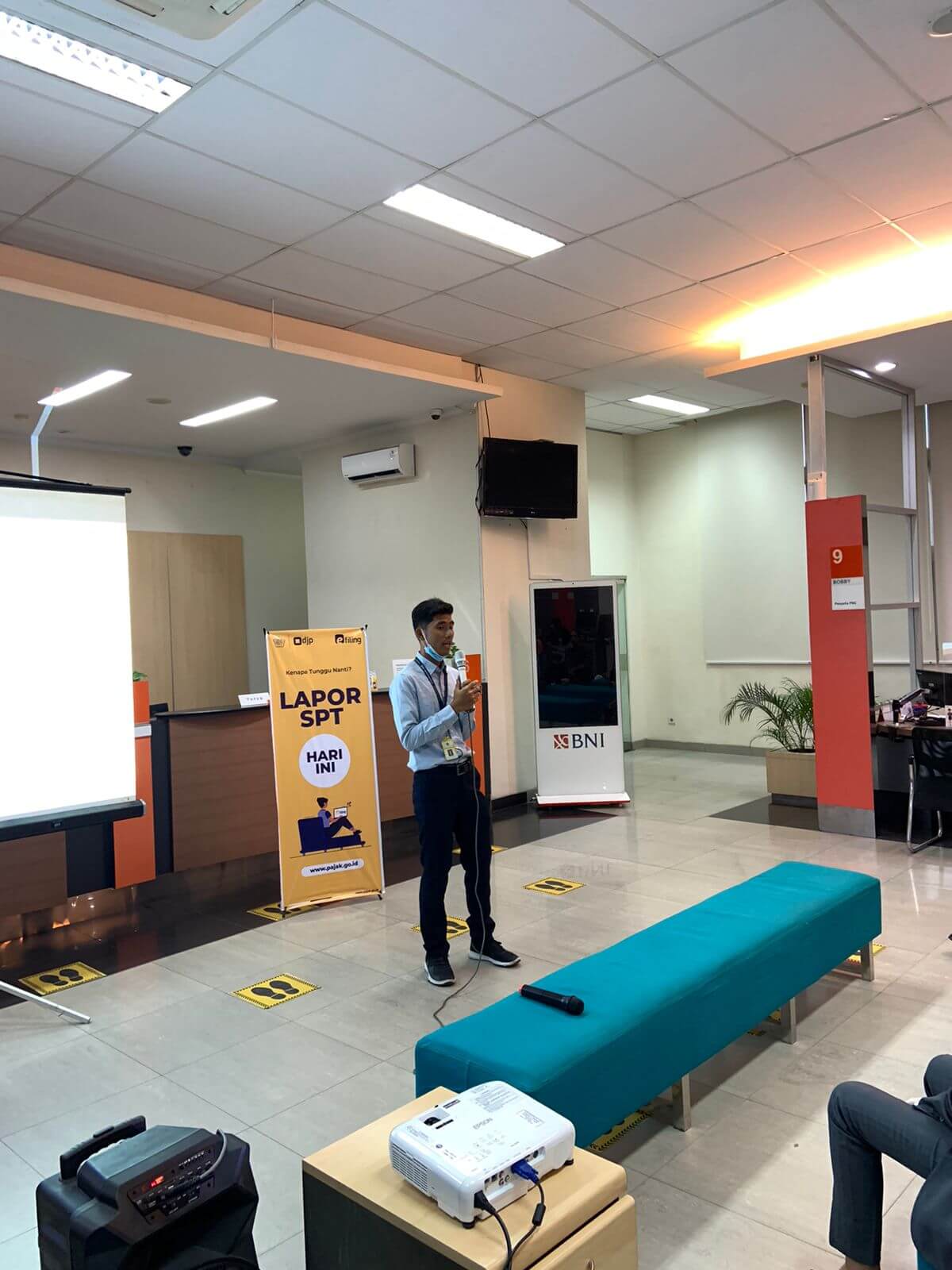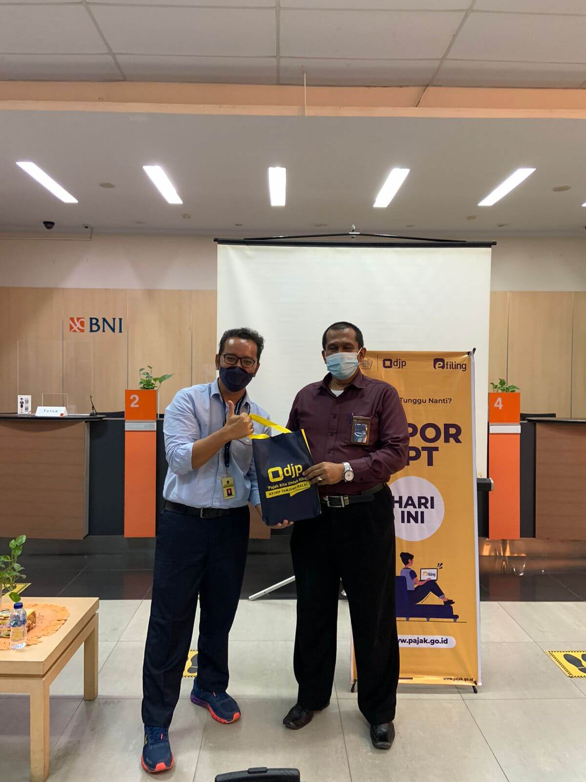 Kantor Pelayanan, Penyuluhan, dan Konsultasi Perpajakan (KP2KP) memberikan asistensi pengisian SPT Tahunan dengan menggunakan e-Filing kepada pegawai PT Bank Negara Indonesia (BNI) Tbk Kantor Cabang Tanjung Balai Asahan. Kegiatan ini dilaksanakan di Kantor Bank Negara Indonesia Cabang Tanjung Balai Asahan, Kota Tanjungbalai, Sumatera Utara (Rabu, 9/3).