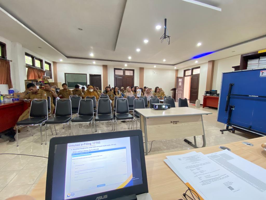 Kantor Pelayanan, Penyuluhan, dan Konsultasi Perpajakan (KP2KP) Fakfak melakukan kegiatan asistensi pelaporan Surat Pemberitahuan (SPT) Tahunan bagi para Aparatur Sipil Negara (ASN) di Dinas Pekerjaan Umum, Penataan Ruang, Perumahan Rakyat, dan Kawasan Permukiman (PUPR2KP) Kabupaten Fakfak, Papua Barat (Senin, 6/3). Kegiatan tersebut diikuti oleh sekitar 37 ASN di lingkungan Dinas PUPR2KP.