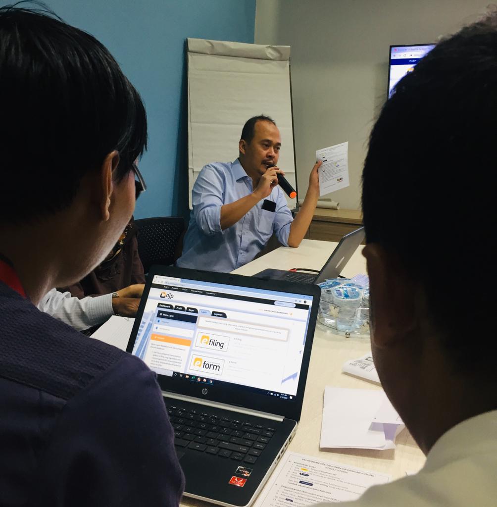 Tim Penyuluhan KPP Madya Bandung menghadiri undangan asistensi pelaporan SPT Tahunan karyawan PT Koprima Sandysejahtera di Bandung (Rabu, 19/2). Sebanyak 14 orang karyawan antusias dalam mengikuti pemaparan tahap-tahap pelaporan SPT Tahunan melalui e-Filing.