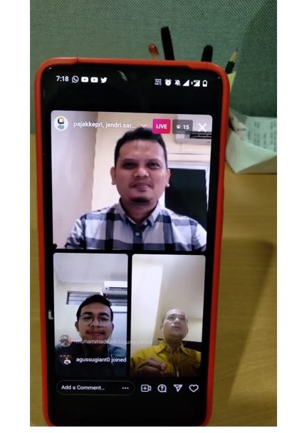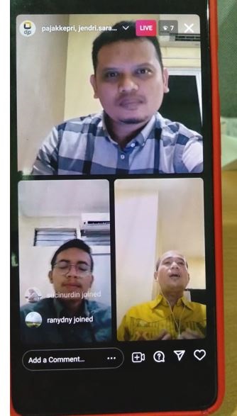 Petugas KP2KP Dabo Siddy Akbar F. dan Fungsional Penyuluh Pajak Kanwil DJP Kepri Jendri S. Saragih menjelaskan tentang tugas dan fungsi KP2KP serta gambaran singkat profil KP2KP Dabo Singkep. Dengan dialog melalui Instagram live ini akan lebih mendekatkan pajak kepada masyarakat dan meningkatkan pemahaman pajak masyarakat.