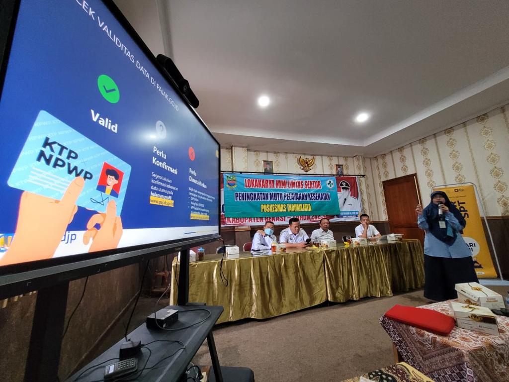 Kantor Pelayanan Pajak (KPP) Pratama Cibitung lakukan kunjungan ke Kantor Kecamatan Tarumajaya yang berlokasi di Jalan Tarumajaya Raya No. 6, Pantai Makmur, Kecamatan Tarumajaya, Kabupaten Bekasi, Jawa Barat (Rabu, 1/2). Kunjungan kali ini dilaksanakan dalam rangka sosialisasi pelaporan SPT Tahunan dan pemadanan NIK menjadi NPWP.