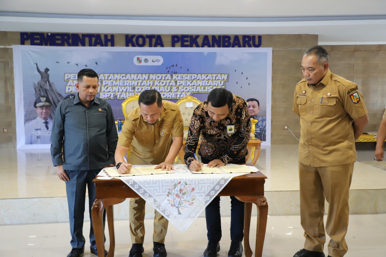 Pemerintah Kota Pekanbaru dan Kantor Wilayah Direktorat Jenderal Pajak (Kanwil DJP) Riau kompak menandatangani nota kesepakatan tentang sinergi penyelenggaraan pelayanan di Mal Pelayanan Publik (MPP) Kota Pekanbaru (Selasa, 30/9).