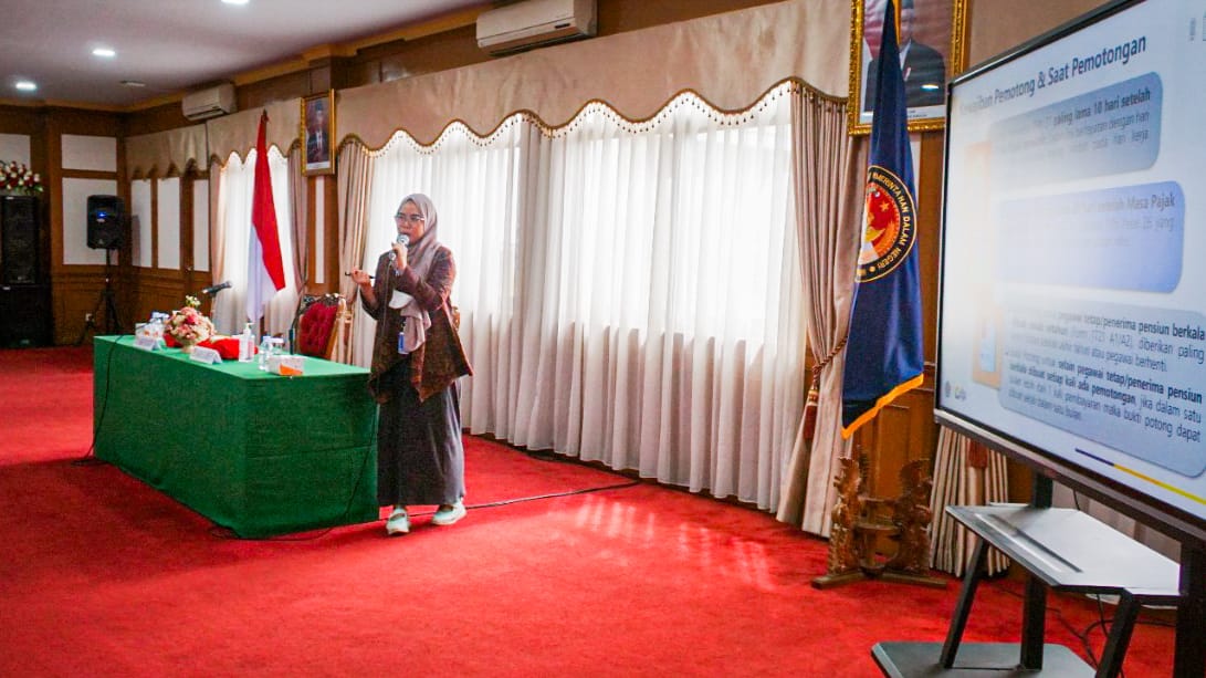 Kantor Pelayanan Pajak (KPP) Pratama Sumedang memberikan Bimbingan Teknis tata cara pembuatan bukti potong 1721-A2 untuk Aparatur Sipil Negara (ASN) kepada Pengelola Keuangan Institut Pemerintahan Dalam Negeri (IPDN) di Gedung Administrasi IPDN, Jl. Raya Bandung-Sumedang Km. 20, Cibeusi, Jatinangor, Sumedang (Selasa, 27/12).